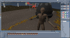 I was surprized at how well Carrara handled all of these figures at one time, along with this rather large scenery piece and all of the lights I'm using. Before I added the cone light that posesses the whole right side of the image, it was easier to see that there are a lot of cone lights in this scene, adding depth and emotion.