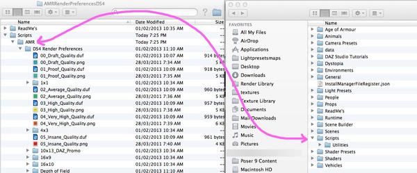 You want to merge the Scripts folder contained in the Download zip folder with the Script folder in your runtime. The easiest way to do it is to open two finder windows. 1 With the zip contents 2 your active content library. Then drag and drop the AMR folder into the scripts folder.