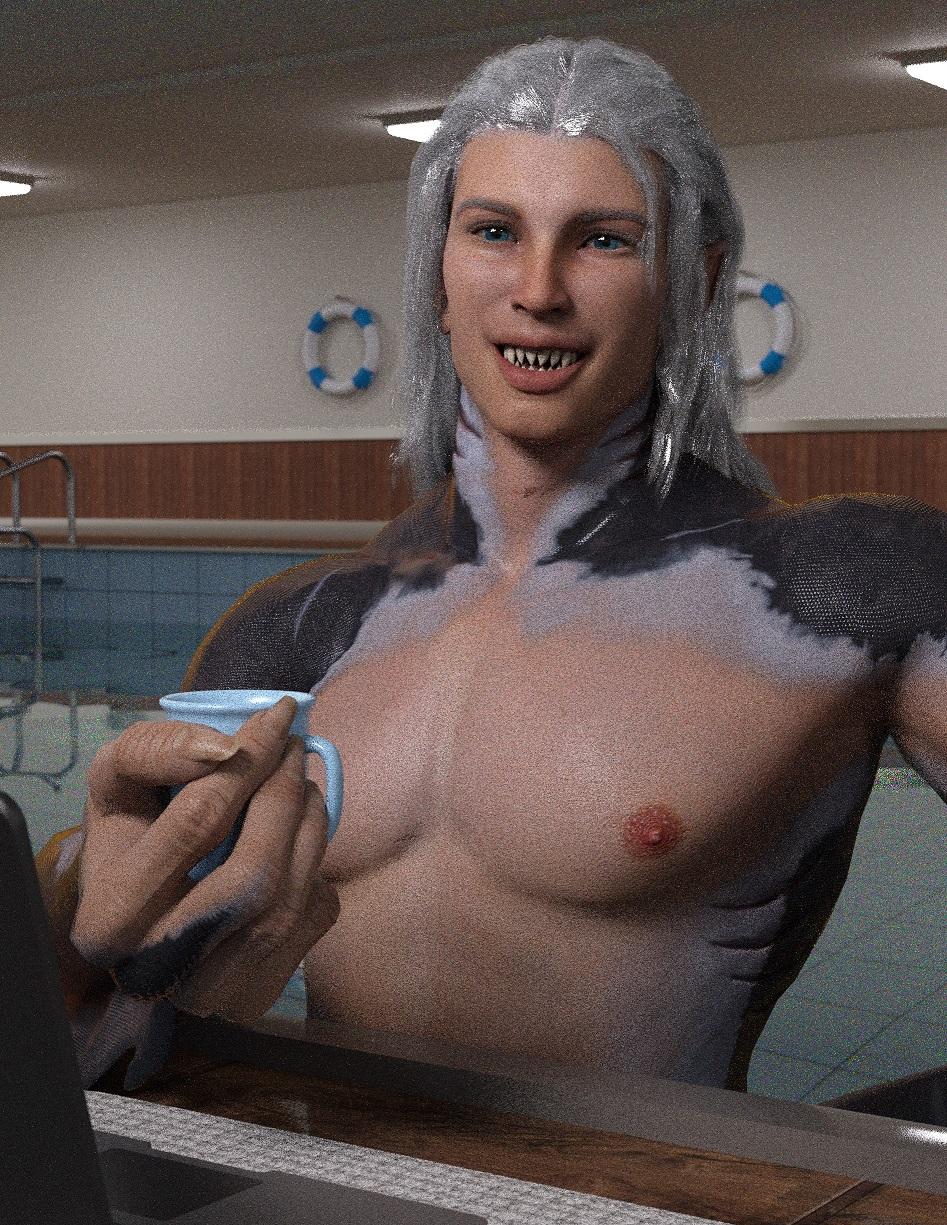 I will try to re-render this scene at a later time and hopefully share in the galleries. Just know that this college student shark boy exists.