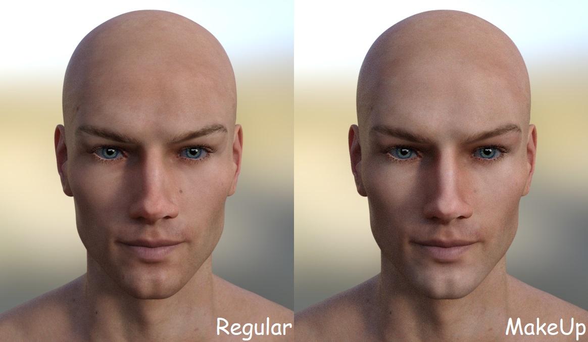A month ago, I decided to give Phoenix1966's Sean for M8 a "light makeup/countoured" face. I have a render in mind that requires him to have an "airbrushed" face. So I briefly converted his texture's UV to Base Female with Map Transfer and used this resource (.PSD files), by adjusting the layers and changing up the colors. Then I used Map Transfer again to make it Base Male. I'm surprised there was even a difference.