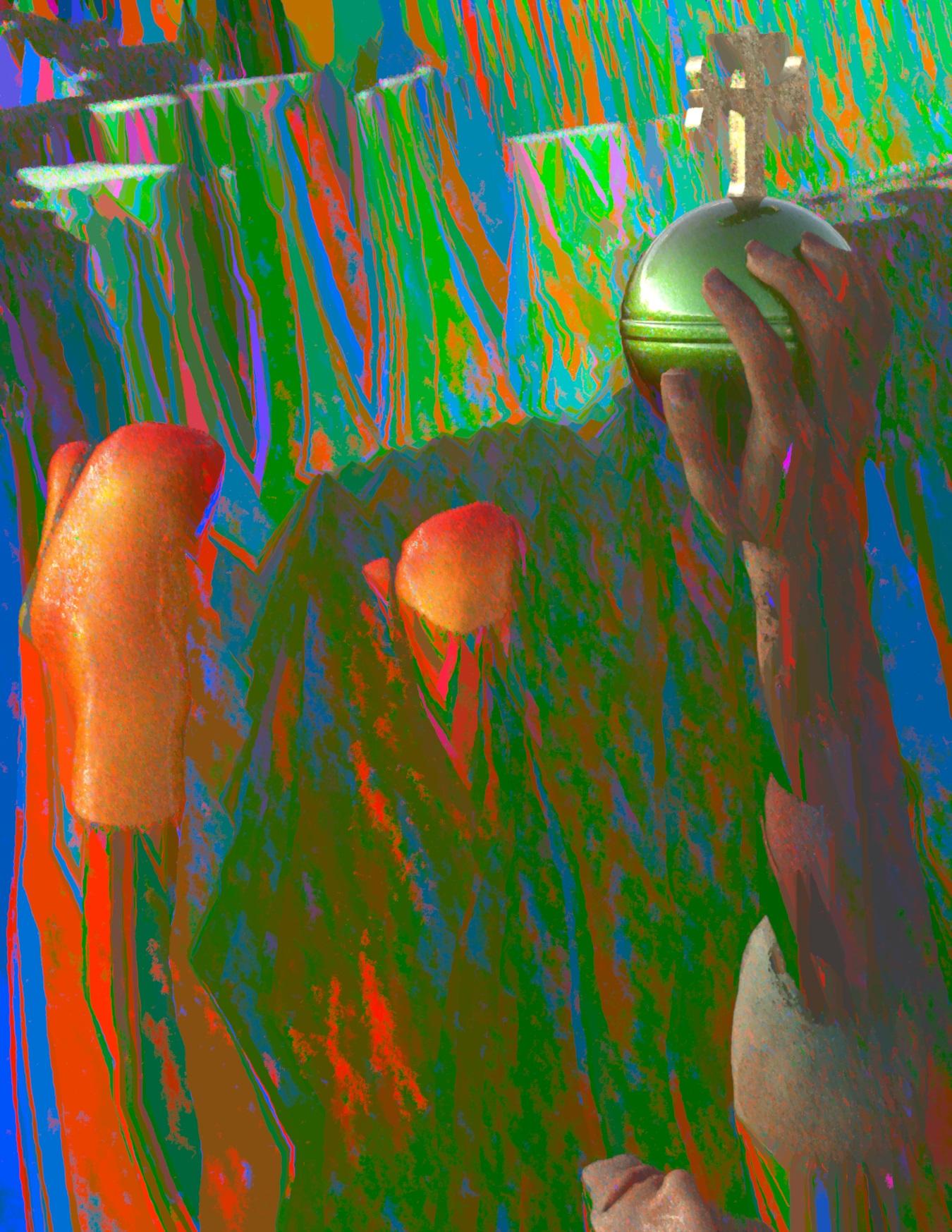 This render has been edited with GIMP because the "despeckle" made it weirdly artsy, so I decided to overlay it on top. I was actually tempted to paint over it and pretend it was a painting I made with my hands.