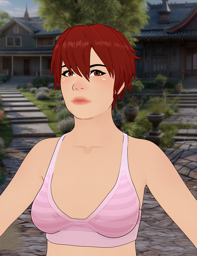 I originally made this scene with Briana to make a quick AI image edit. But I like how she looked, so now I'm trying to change it to be its own original render. I need more LIE makeups and more toon eyebrows.