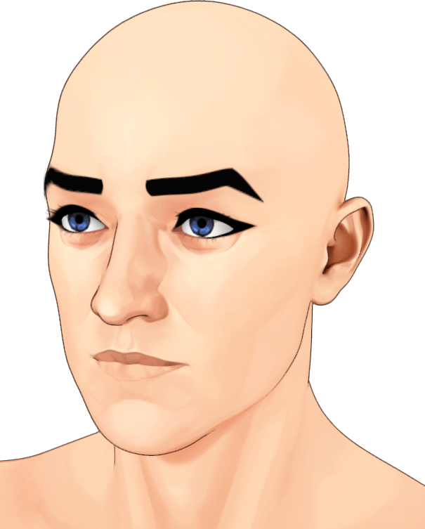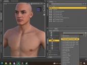 I didn't save the workflow, but to get his skin to look like this, I rendered him twice. The first was one with a human skin, and the second with the G9 Toon skin. Then, in GIMP, I overlaid them until they blended together. Afterwards, I sort of painted over him a bit and tweaked it. I wanted to use "Eyebrows 08" (I think?) and those are missing from my Runtime. O_o