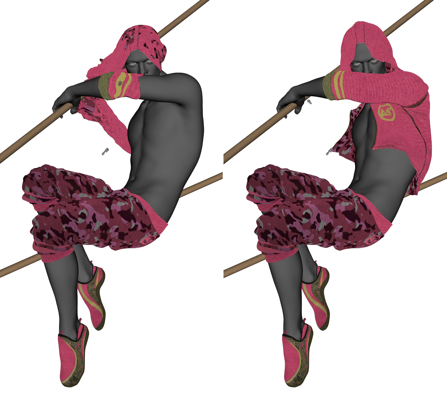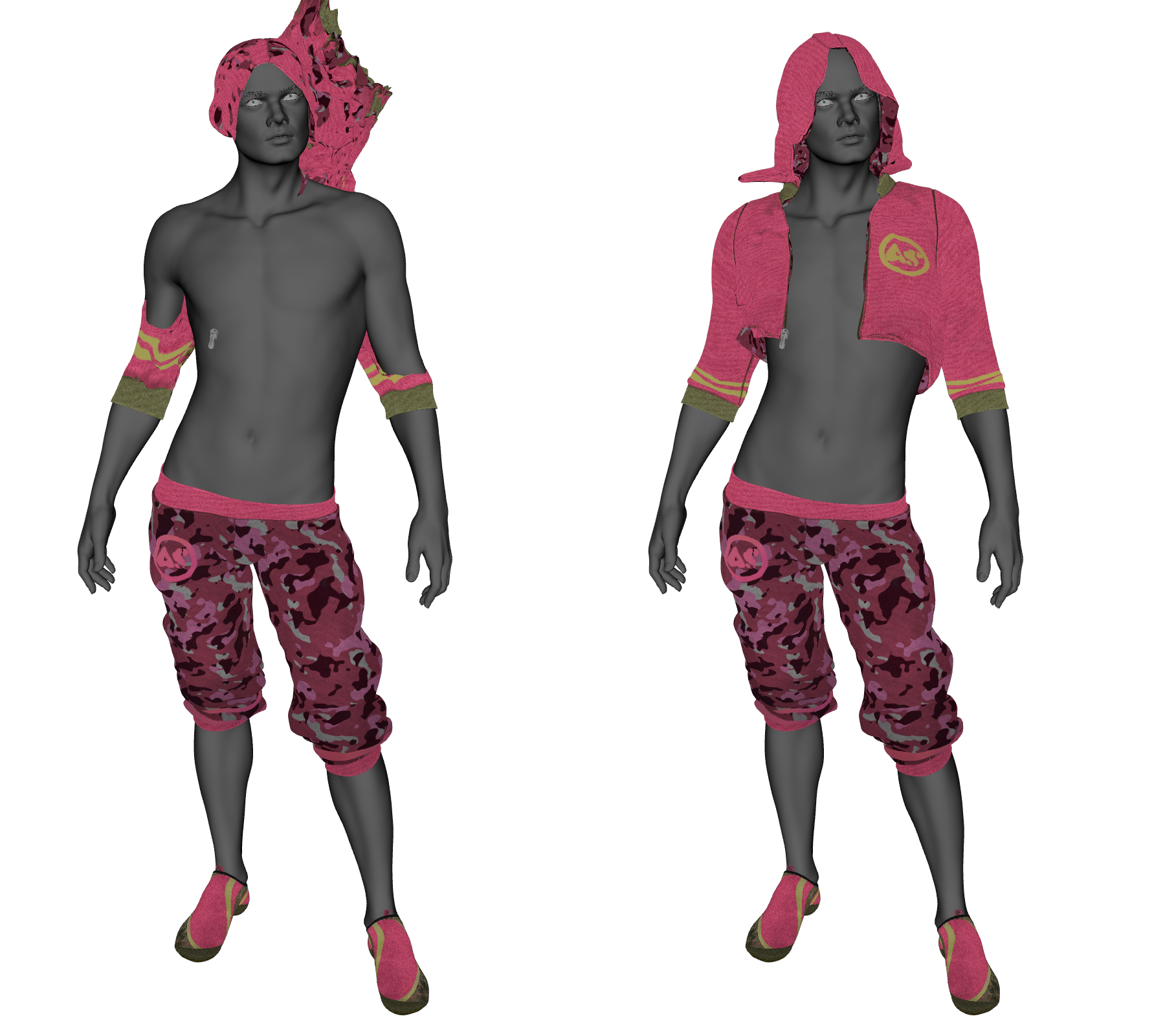 The dForce version of the Urban Noise FM hoodie didn't work when I used it. Or maybe it's freaking out because I am trying to make a male G9 wear it. It and the other variant were on my wishlist for the longest time but mostly because I couldn't decide between the default colors and the styles. I prefer the closed/zipped up style, but liked the camo colors of the open/unzipped one more. Another closed variant was released elsewhere, so I decided to buy the open one from here. The idea was that if I liked this after trying it out, I'd get the other closed variant to have both tops with the shared pants and shoes.