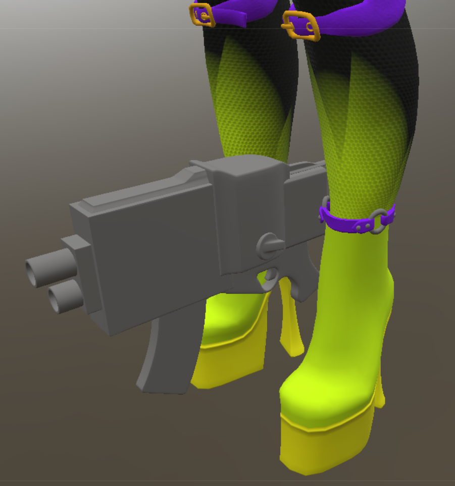 Only the silly gun is missing its texture, and in 3DCoat, I have everything exported, so I can better color match or see if the normals are all similarly scaled. I go back and forth between this, DS, and GIMP. I also need to line up the normals for the boots. The soles themselves don't need to have the scaly appearance.