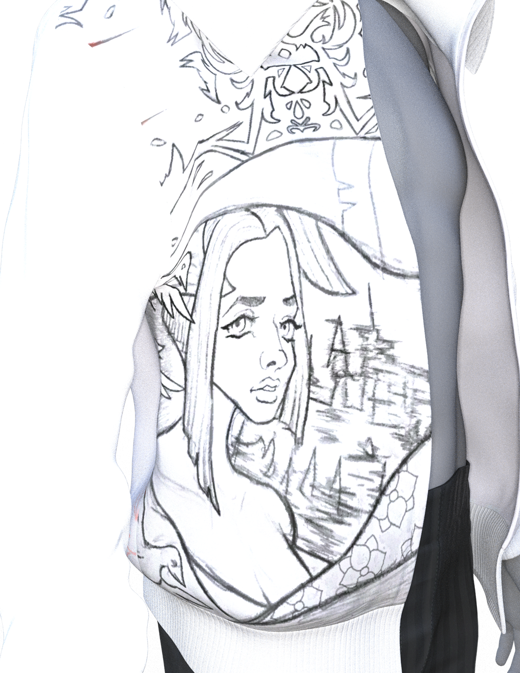 I actually want to retexture a hoodie like the last pic. I love it and want a consistent reference for future renders. I just need to figure out with asset will be getting hand-painted by me to vaguely resemble the AI image hoodie.