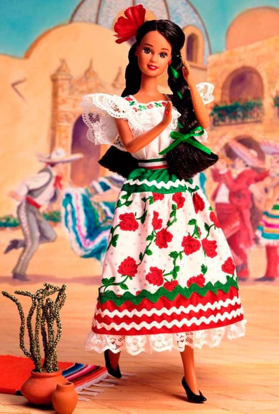 This is the diffuse texture only, created in Sculptris, MS Paint, and GIMP. I just need to do the actual fabric and a dffferent lace transparency. There's a specific reason why I'm using Barbie Pink, and that's because I want the Bardot Outfit to look similar this Mexican-inspired Barbie doll's outfit. (Though I may just keep it pink, black, and white. It seems simple-enough.)