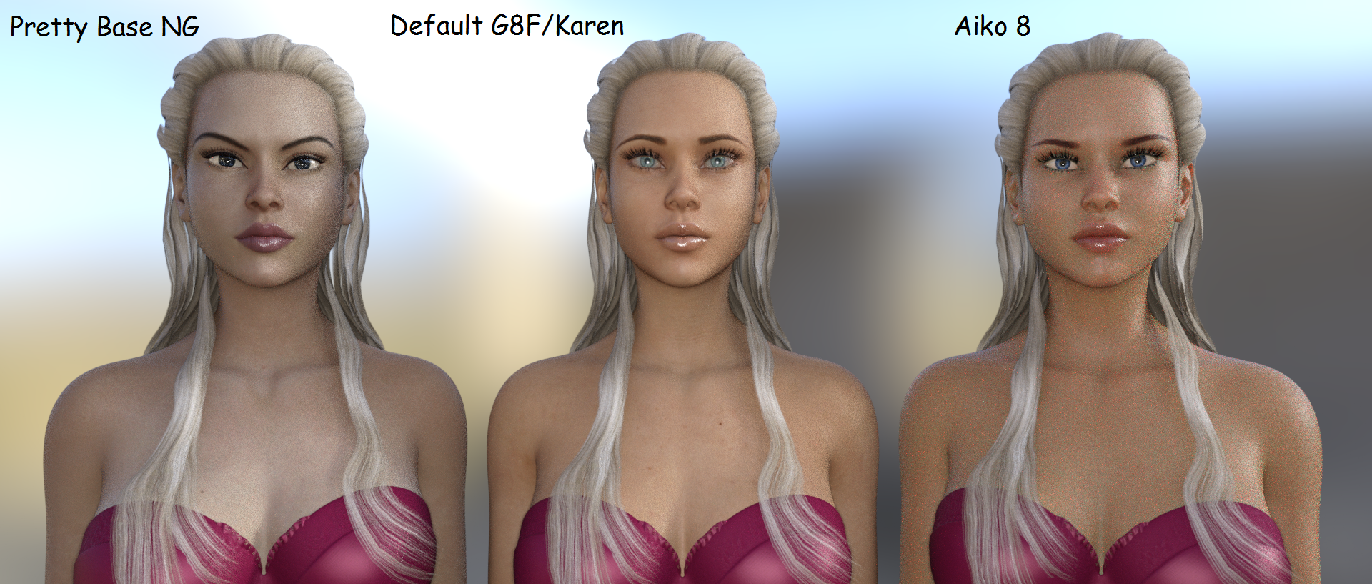 I used the Aiko 7 skin on the G8F version. I don't know how to adjust her skin to give her more color because she's not supposed to be pale.
