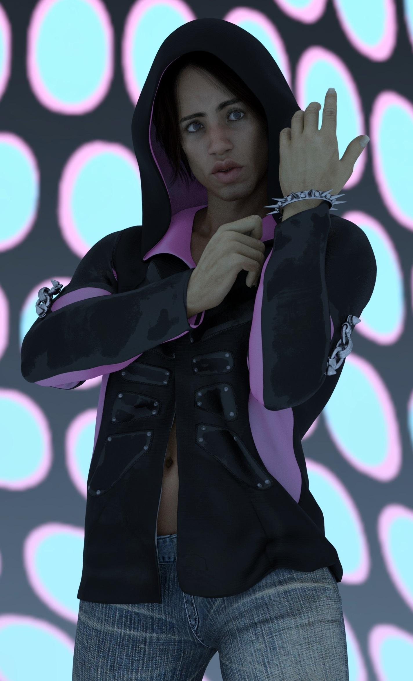 The character is based on Darius 8 but with the DO head morphs and RareStone's morphs mixed in. I can't exactly re-make his body to my taste, I would need Zev0's Shapeshift morphs for that. I used Hellboy's lashes utilities too since I felt his lashes needed to be thicker/prettiier. His spiky bracelet is from RebelGirl - Outfit V4 by digiPixel from Renderosity but with the "cast iron" default iray shader applied to it. That shader was also applied to the jacket's metallic accents too.