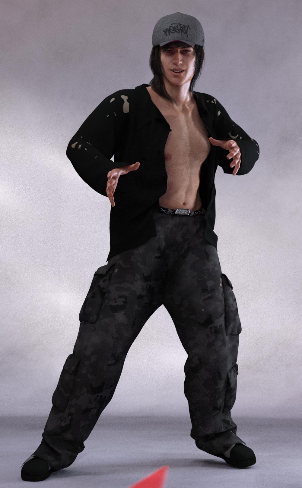 It's just meant to be RY Kian wearing the dForce Hip Hop Street Style Outfit for Genesis 8 Female(s). His hair is the Brendan Hair for G3M.