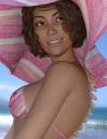 • I did this one a while ago, KamilyAnn for Zelara 8, but with a freebie character Diva Karli at 100% substituted in for Zelara 8. I used Olympia 8's skin and Bella Hair. The bikini is Hongyu's Bikini for V5 but with the Swinging 70s texture add-on by -renapd- from Renderosity. The hat is a freebie hat from SAV's Hat Collection which the texture add-on provided matching textures. I thought this character would look prettier without Zelara and it turns out I was right.