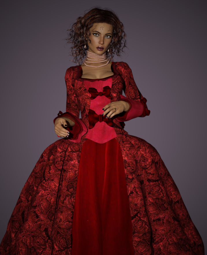 Lucrezia Locks Hair and Marie Antoinette Gown A3. Not bad. Tried to remove the poke through with smoothing but still had some holes in the bodice. Used fit control and it worked great. Also used SY Front Fixer G3F by SickleYield from Rendo to fix that weird front stretching. Rendered in 8 1/2 minutes.