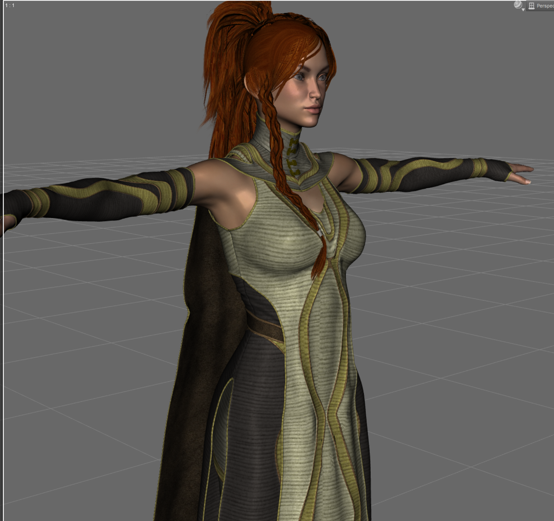 • The lower part cloth/tunic as well as the sash & the hair on the helment lost the morphs for movement when converted (so I forgo them).