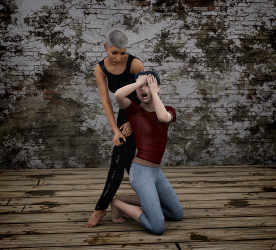 I have another render for you. I even tried the Flat Top out on women and girls. After all, some women wear their hair very short. This one is titled Drama in Flat Tops.