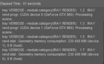 Iray VERBOSE - module:category(IRAY:RENDER): 1.2 IRAY rend progr: CUDA device 1 (GeForce GTX 960): Processing scene...