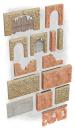 The second design aspect is each prop only has 2 material zones [walls/rock] or [mortar/brick], which reduces system load and allows the artist to easily apply high or low resolution textures (lo-res supplied). Which also (as hown in image 2) gives the artist the abilty to make very quick changes.
