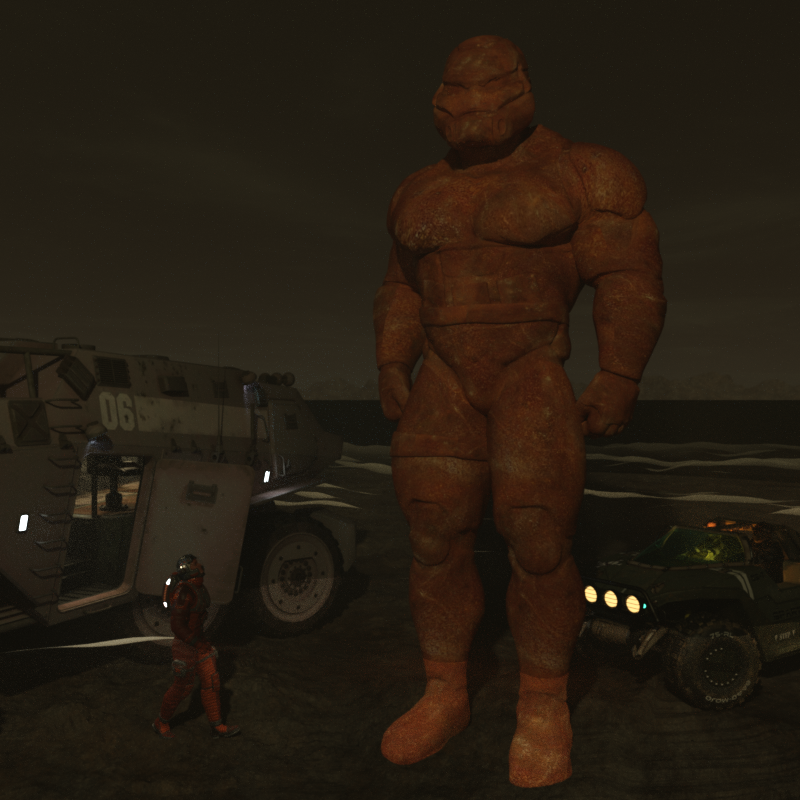 I love the addition of your vehicles and that you changed the angle of your spaceman's head. The vehicles are also adding another level of scale between the spaceman and the statue.