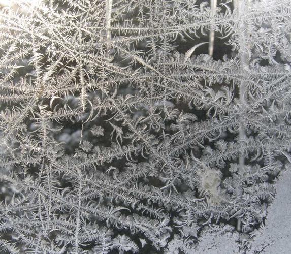 8:00 AM, south facing window, large dark pine tree as background. Ten minutes later it was gone. (The frost, not the tree) 8-s