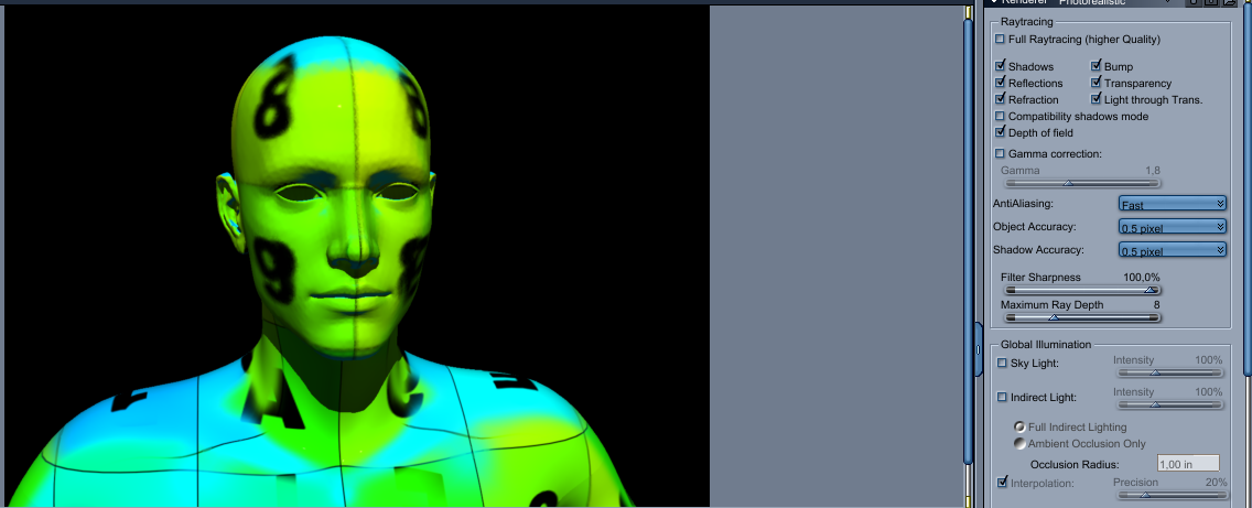 On this render with low density, the face is far more blurred than the body.