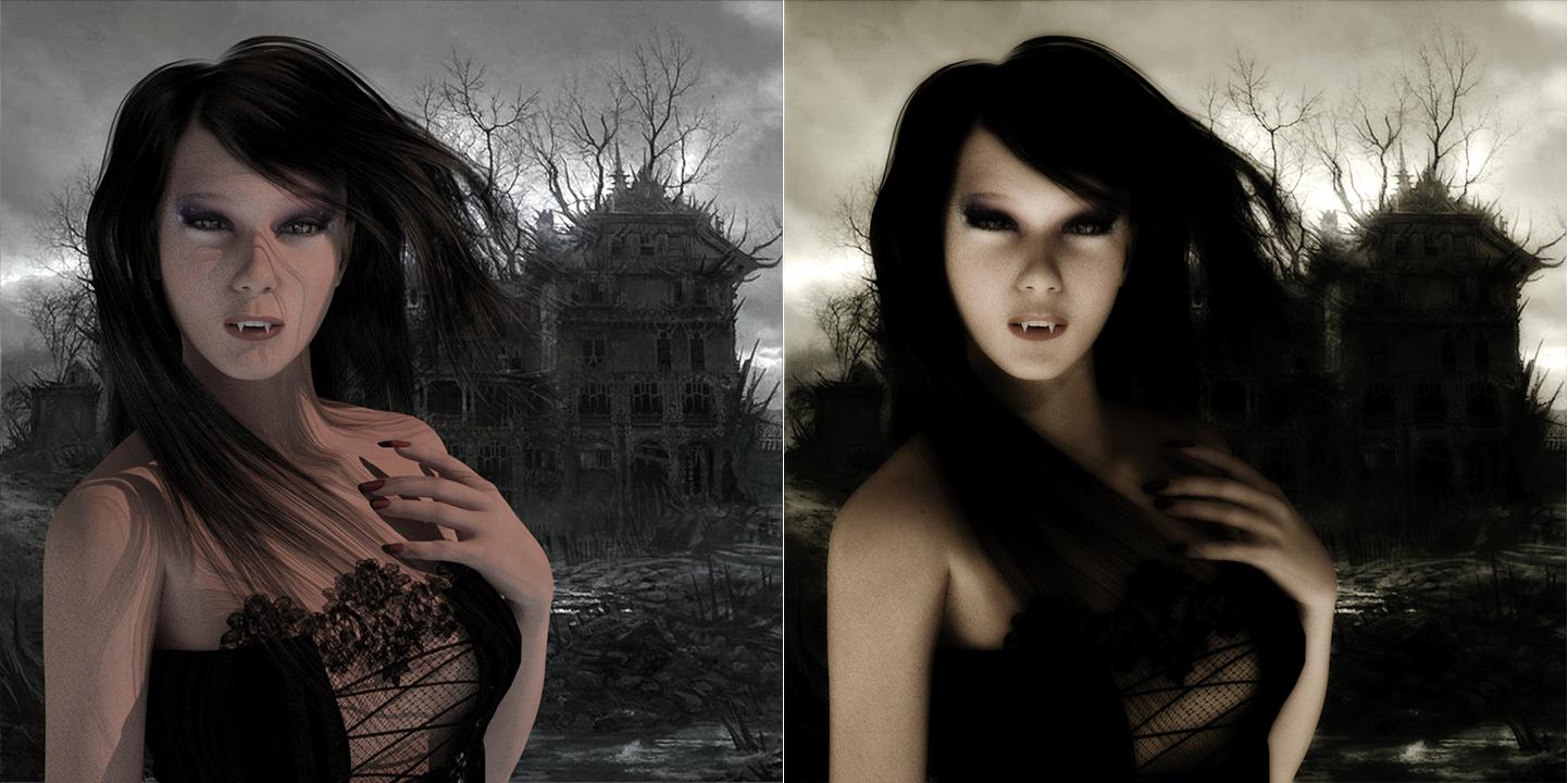 I enjoy creating supernatural scenes, but lighting was always a challenge. I did a before/after image, left image I used 3 point mesh light setup, I was not happy at all, no matter how I manipulate the lights, I toss the light setup. Right image I tried Iray ghost lights for the first time. And thought wow ! I was able to illuminate areas I desired, well balanced lighting. No harsh shadows on her face, chest, etc.... I'll share more as I continue to experiment. Architectural interiors are next.......