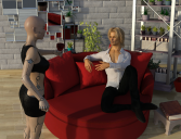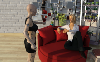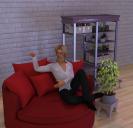 As for the sofa scene, I went ahead and cropped it as suggestec by you and others. I had to fix the clothing in post work because nothing that I tried worked perfectly. In fact, I had to change the pants altogether because I must have smoothed etc too much and the pants started "blowing up" on me. I had to give up, but I will play more with clothing till I get it right. One thing that didn't help was I used a shirt that is for g3f - which probably made it that much more complicated for me.