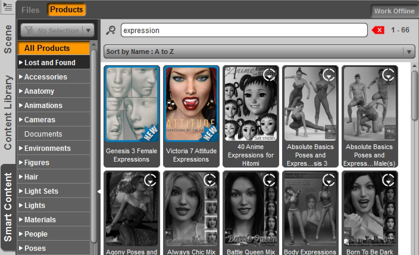 That expression product can be very hard to find in the Smart Content tab because it does not show up when a Genesis 3 female figure with "Filter by context on" is selected.
