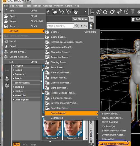 To save a custom morph: Save As/Support Asset/Morph Asset/