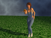 I've just started tonight and have already run into problems... see the pics. This was only a test render... once I get started on a scene to place the character the entire look will change... trying to decide now what my next step will be... work on background??... perhaps load an interior or even create a terrain.  Ahh... what to do... what to do.  This is the pose I came up with from a slightly modified preset one... that will stay basically the same... might do away or rather replace the overalls since the left leg doesn't create much of a shadow or difference over the other leg even with some spot lights I added at different settings.  BTW: The skin tone comes from the Key spot light, see pic for color used.