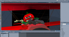 Since the file loaded more quickly I decided to play... here are 2 Toon! Pro renders.  Neither are quite good enough on their own but with either and the PR render I could combine them... or at least give it a go... most problem is the eyes and mouth.  I'm headed off to make a model or more for the scene at the moment... and of course decide on an already modeled Tomato.  Oh... I've decided to make this billboard sized to allow text and model. I'm planning on rendering at 3 or 4 times the original size and then stepping back down to twice the size of original to see if that improves the quality, sharpness... hey... I like to experiment. :)