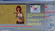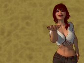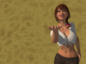Well... another attempt at a better pose for the Tomato Gal.  I'm designing an advert so re-shaded my background... it's shader is all Carrara procedural settings which it comes with except for Veloute "Random Lines". I might just seperate it into a different file and render as back drop... loading/saving the character is taking about an hour... why I don't know.  She was saved from DS, dressed (diff clothing) and posed, both as a scene subset and also as a scene... both are dang slow... so today I "hid" a bunch of presets not used... didn't seem to make a difference.  Hey... waddya know took less than an hour this time... might be because I replaced the skin MU entirely with Ambi maps by Ringo Monfort.