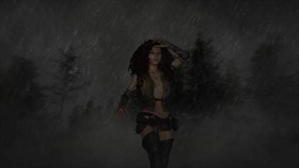 I used Rotoscoping tools to make a make on her, and added a slower, lighter, rain effect to add water drops...