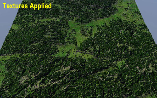 Then by choosing the height terrain and adding an appropriate texture and then selecting the grouped boolean of the forest and adding an appropriate texture, you're done.