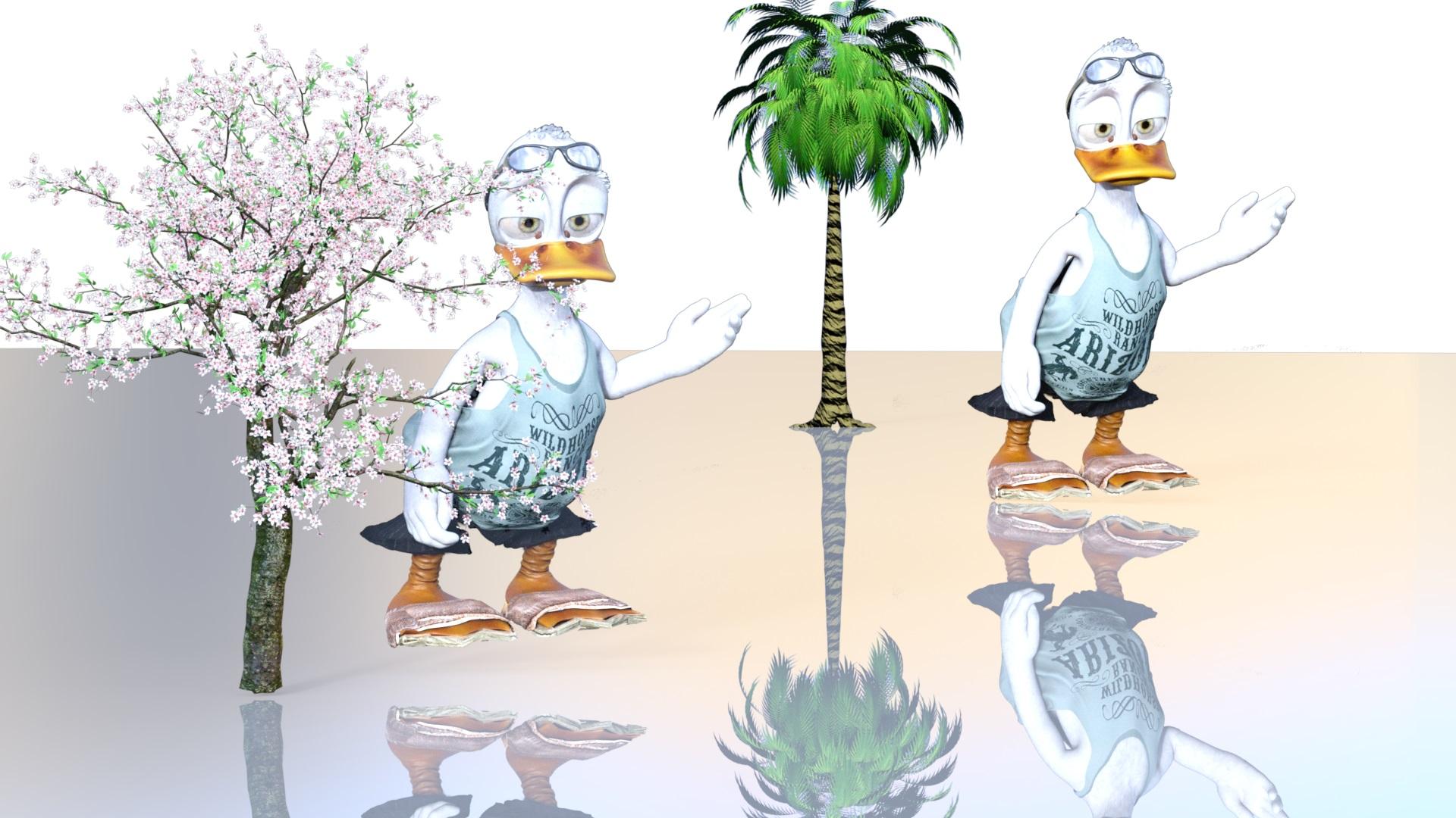 Below is a test iray render of Toon Duckie. On the left is a Billboard node (from the plugin), on the right, the plane primitive from Daz Studio.