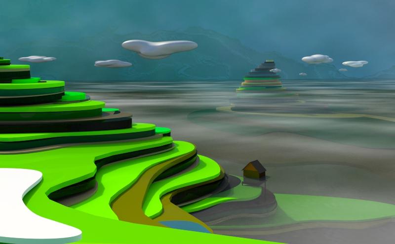 it looks as if I would have made allot of changes, but actually I did´nt. Two fog planes between the terrasses, an image applied to bump and normal map and a little bit more F/Stop. I´m curious what the "brown" version will be.