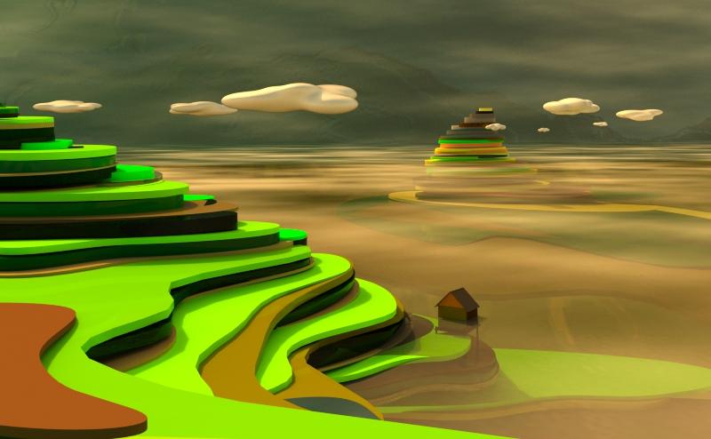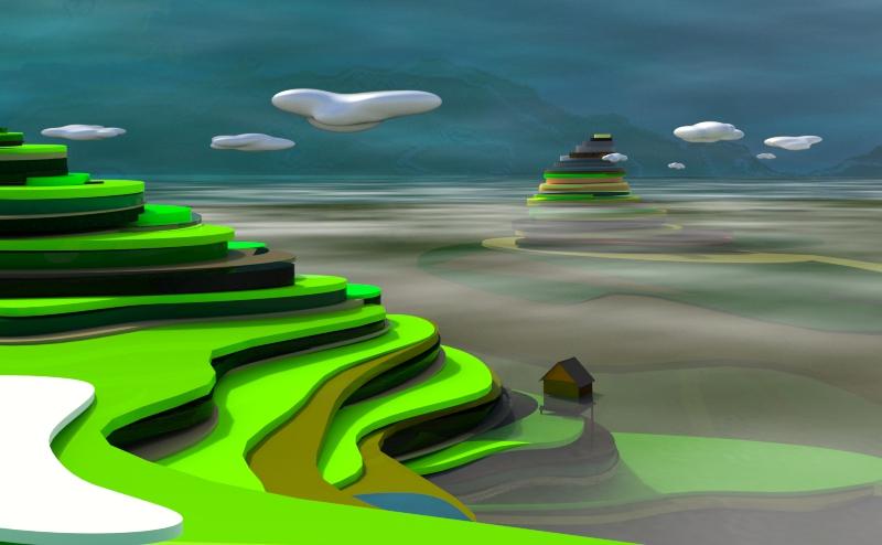 This is my second version of my image. I substituted the translucent plane for fog to create a more realistic haze and added some extra flowers. The girl is now picking flowers. Not sure if I will have time to create another version before the end of the month , but I would welcome some feedback anyway.