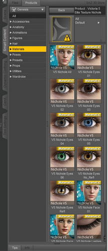 In the example below the files for Elite Texture Nichole show properly with no yellow exclamation marks and function properly but the product icon is missing.