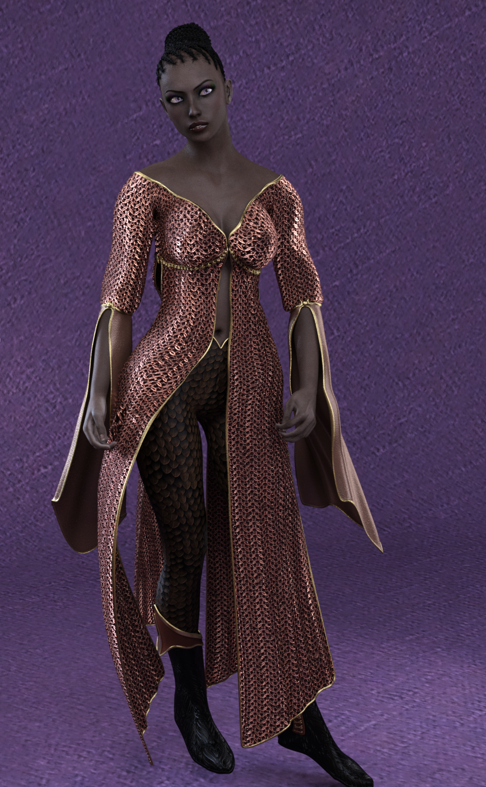 Anyway, I looked up saving multiple materials at a time, am I missing something on that front? Because all these Gex2'd characters (the morphs) won't look good with just one set of material options. I didn't see a product for doing that and don't remember one. But here's a Rendo gal named Astrid, showing you a few of the Pro-Studio lights. I'm liking my older content. This is a V4 with the iray converter I've been using. These lights had a bit of rosey color so her hue is more red than normal.