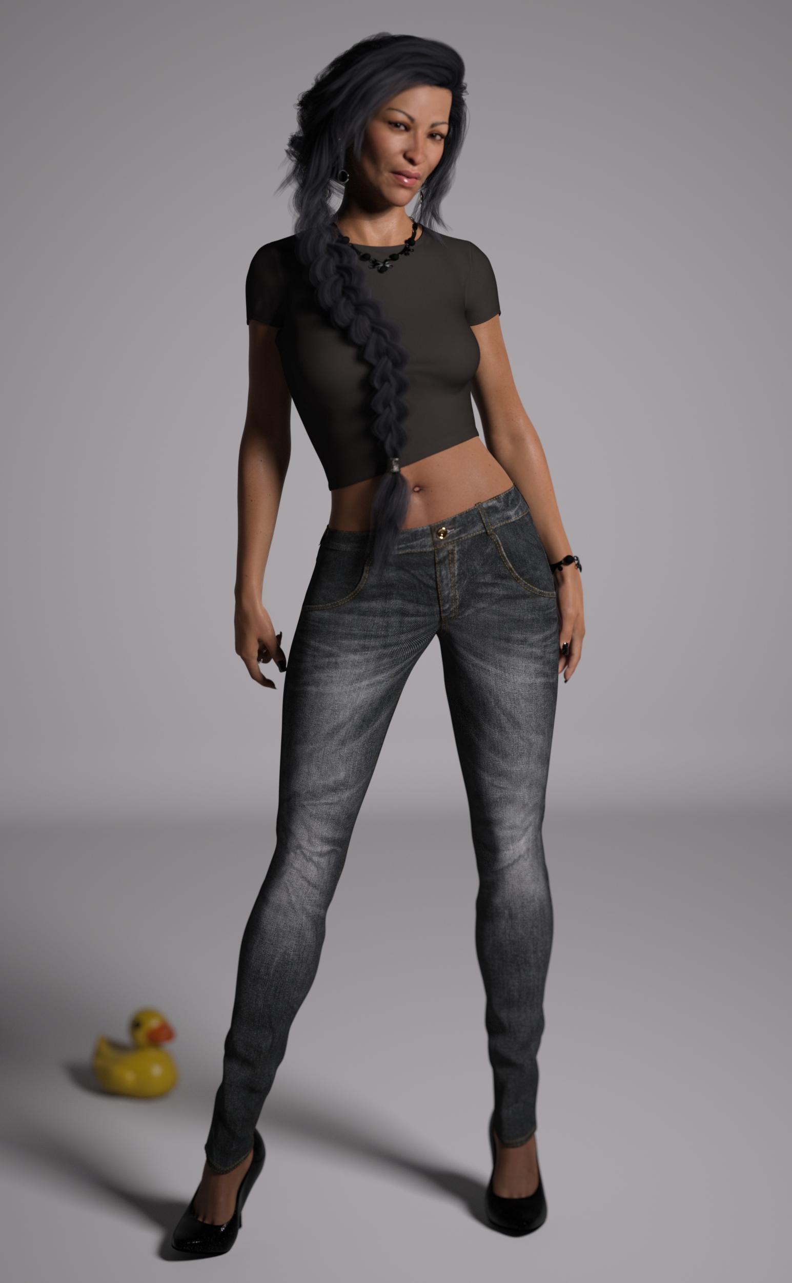 This is my first morph transfer, Aliya for V4. She is using a G3F texture as I haven't had time to try out the skin transfer tool yet. The morph worked perfectly so thank you very much Novica, for the tutorial and pointing me toward that video.