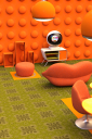 There are props for everything too. Each prop loads on its own and in zero position. Including the square retro deco pieces for the wall, so you can make your own configuration if you wanted. The "room" itself is just a plain base colour - no textures. But because it has walls, roof and floor surfaces, you can put your own shaders on it if you wish. With the deco pieces on the wall loaded, you won't see the walls tho, just the floor and ceiling. There are 5 "retro deco" square pieces - some load standing up that are for the walls, some load flat on the ground as they are for decor for the ground. I am putting a ticket in tho as two of the retro deco pieces that load are just plain blank orange, whereas the icons in props show they have a design on it. So I'll report that to see what the deal is - who knows if anything will be done tho.