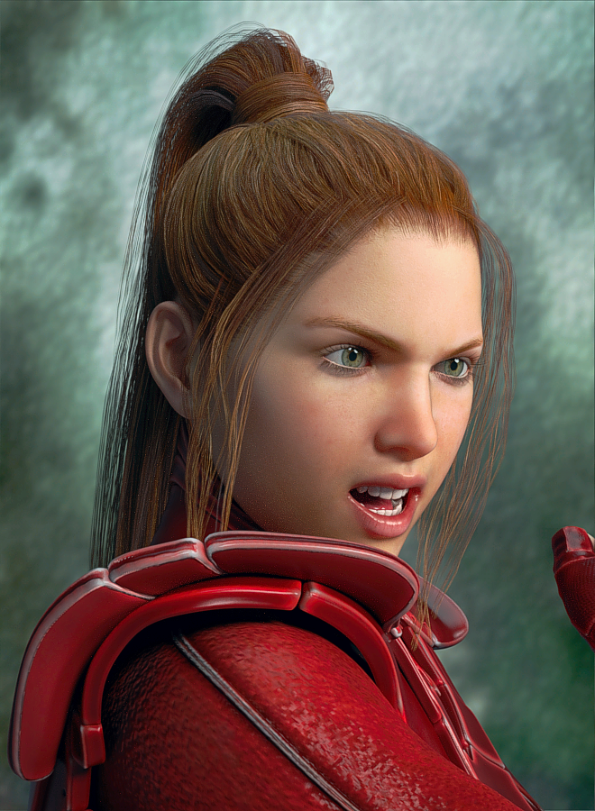 And Adele. Wearing Geneva Hair and Attica for Genesis 3 Females.  For poses, try the Teen Josie Counteenance and try contempt .20 and rage 1 at .27 for this type expression. I think it's very fluid-looking.