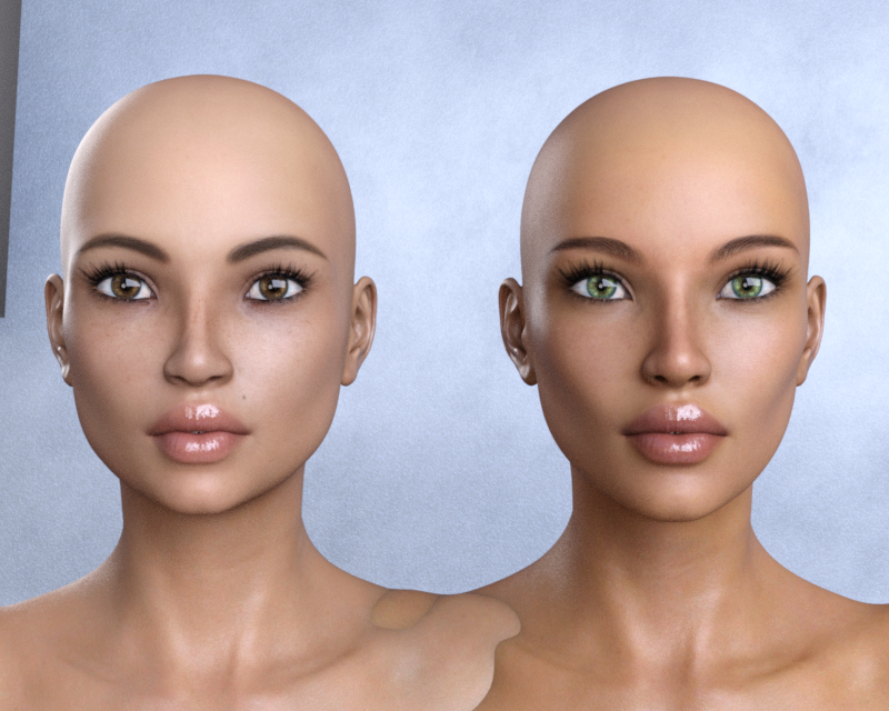 I don't have time to do a lot of renders to show you, but with Adele, I found it frustrating in the posing of the eyes. You can see in the main promo they are not exactly the same, and for posing, it's really hard to move just one with the universal tool showing. So, I know there's a way- how do I hide that stupid Universal cube so it doesn't show up? It blocks the view. Just be aware that if you use a pose from a set, that eye will need tweaking IMO.