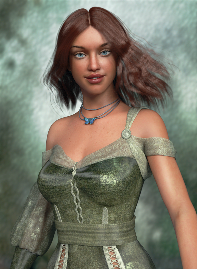 This is Abby. She almost seems like a Girl 7 character. I liked her materials more than the morphs, I did putz and reduce the pucker of the ends of the lips (shown here is the default though.) Lothriel Outfit for Genesis 3 Female.  Be sure and check out the freebies, it's changed.