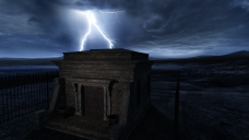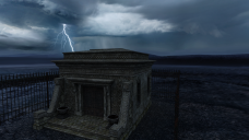 As I do a lot of scenery renders, I'm always on the lookout for useful HDRI's for lighting and background. A recently released product is Iray HDRI Storms Lightning and Desert.  It comes with 5 dome images: day with or without lightning, and night with 50% lightning, 100% or none. It's easy to rotate the dome using the dozen presets which vary by 30 degree increments. You can't normally see the image in the preview, so best to launch the Aux Viewpoint and set it to Iray rendering. With only one building in the scene, it rendered quickly, so it was easy to fine tune the position of the lightning bolt. The sky images have variety, so as you rotate it, you go from an area of gathering storm to one with it full bloom. In addition to the images and rotation presets, there's 4 camera presets of varying focal length. I like how easy this product makes it to add an attractive stormy atmosphere to a scene.
