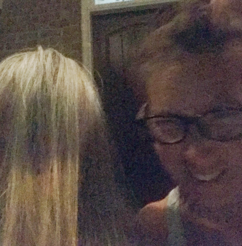 Ah, thanks. We were out again last night. She brought her remaining two small dogs outside and we sat on her porch. While she was petting her dog in her lap, I pulled all my hair over my face. When she turned to talk to me, she almost jumped out of her skin. She cried-but this time it was because she laughed so hard at being startled. Then I had her do it and we took a selfie. She said she looked liked Chewbacca and I looked like Cousin It. (which for me is an improvement.)