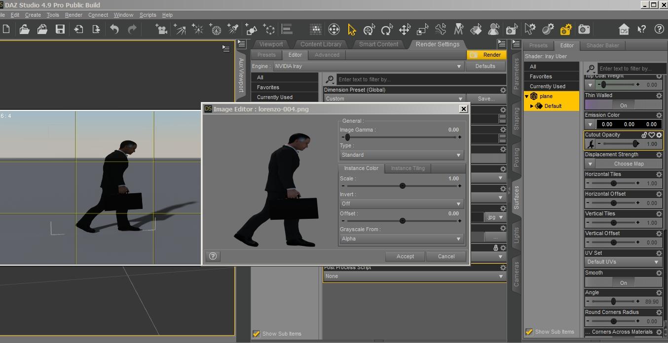 No it doesn't work. I rendered out girl walking, saved as png, then loaded plane, and put the png in the diffuse colour. The plane background renders black. I'm doing somethin wrong but i can't work it out.