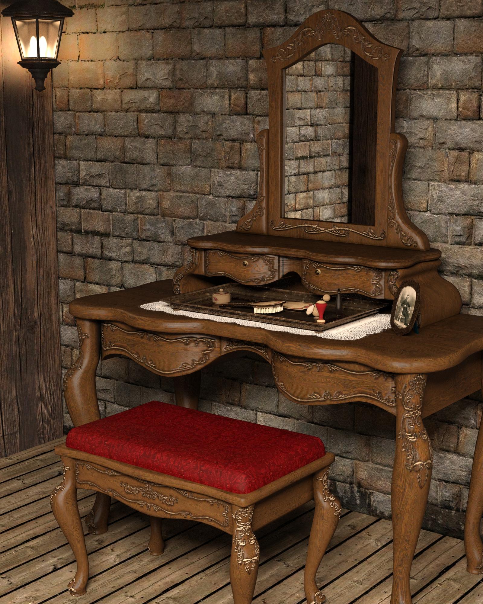 Something interesting- the Carlton House Desk has a "secret" drawer, and another one with a false bottom drawer so if you do scenes where things need to be discovered or hidden this is a good desk for you! Can't beat the price ($3.48)
