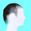 Here's the problem: The skull cap does not fit against the skull. This hair is made for G3M but doesn't even come close on the sides of the face! All the attached images are at 1000px square. The G3M has only a light blue color, so it's obvious where the skin shows through the hair, (though not a problem in iteself; people often have their scalp show through in spots.) With just the Skull cap, I made the G3M emissive and had to remove the maps and set the cap Cutout Opacity to 50% to really show the issue. Here is one image, showing how the cap is pushed away from the head to simulate fullness in the hair.