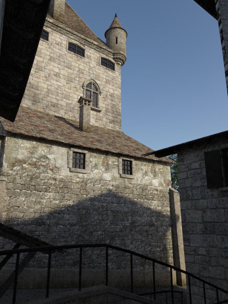 I've also had my first chance to try out the Yvoire set by Faveral. I really love it - there are very many nooks and crannies to explore. Here are several views - sorry for the graininess, I was too impatient to let it render to a high degree of convergence! (One day soon I hope to do a decent render of Yvoire) - click for bigger pics.