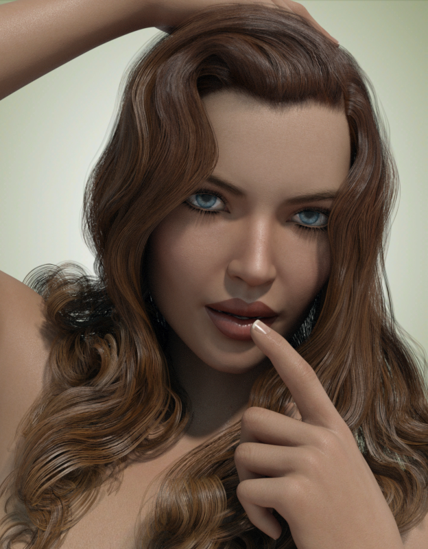 This is not Desidora's default skin, I tweaked it for quite awhile. I also increased the bump on her lips, they're very smooth. The darker lip color is mine, I changed the base color in Surfaces. So what I wanted to test was to see how well it lit with different light settings, as sometimes  tweaked skin may look good in one light but too shiny in another. This passed my tests as not being excessively oily and IMO pretty natural looking.