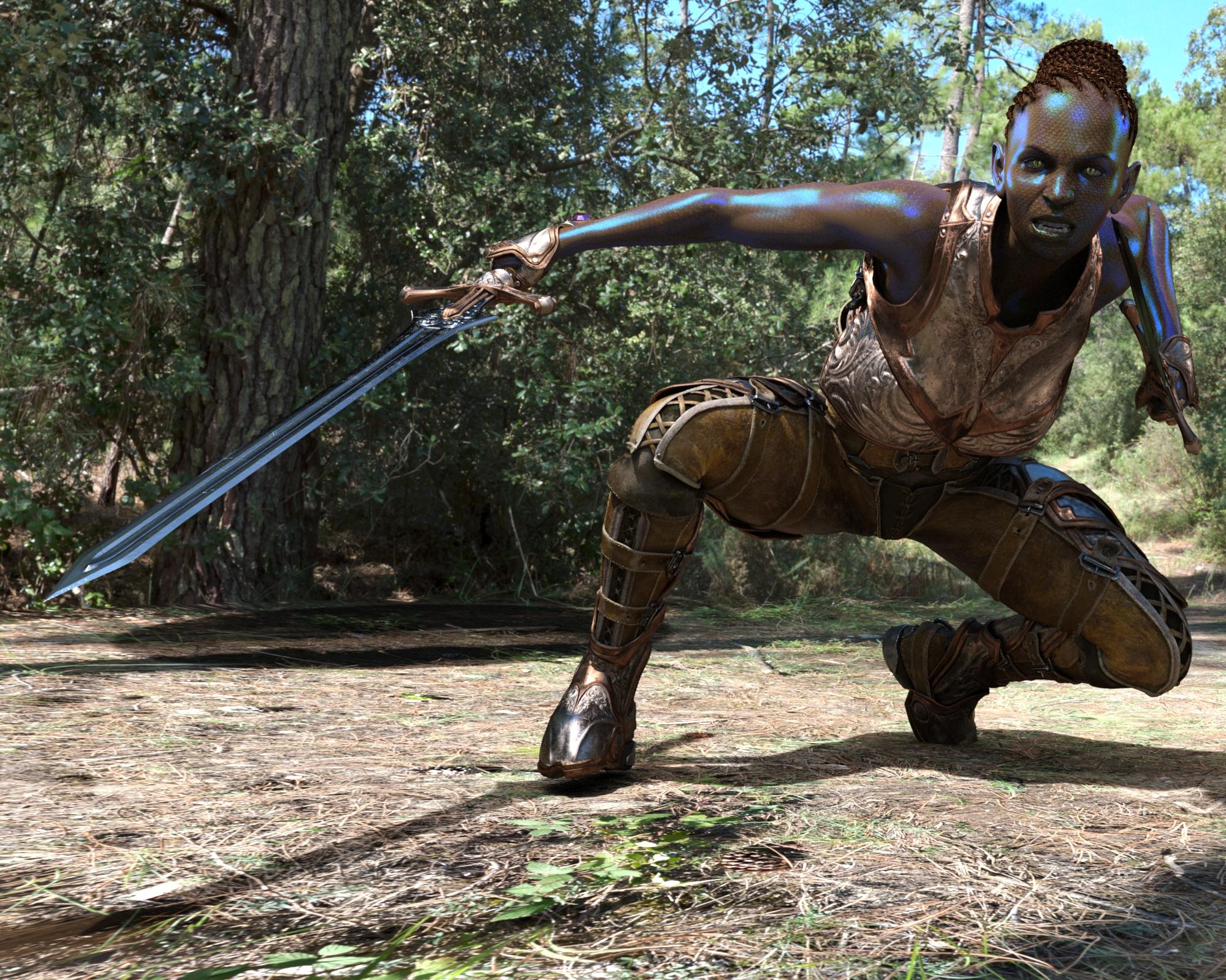 @icedragonart  Wow, just wow. That bluish/purple sheen is quite a nice touch. She's just so unique! That outfit has nice details in it too, and it looks very fluid with the energized pose. Very intense!  Thanks for sharing- and rendering things you've had for awhile is actually great- doesn't have to be new, between all of us we're getting good coverage- it's covering the vendors in general, due to the stores and Mega Fastgrab.